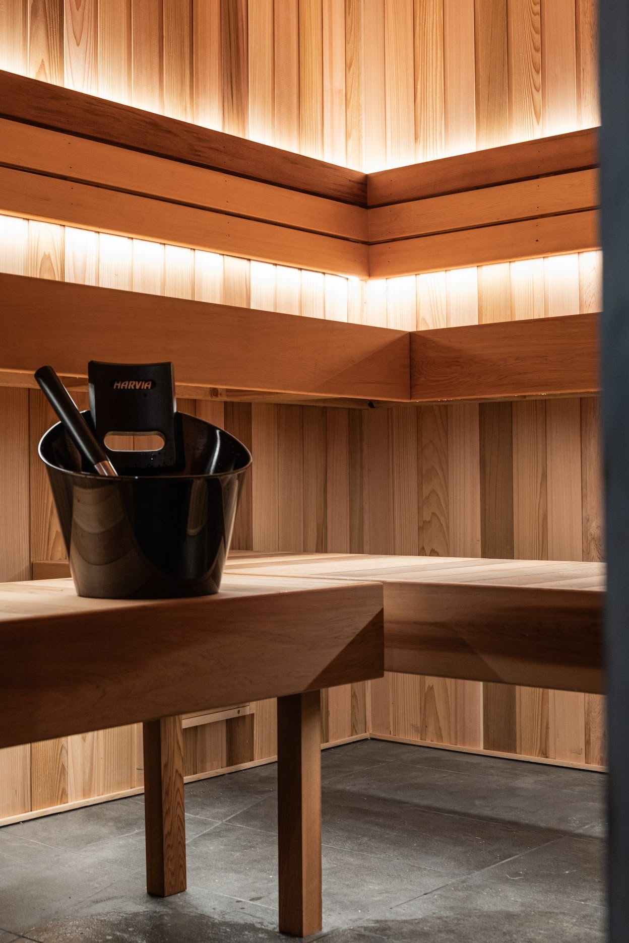 A two-tier bench layout provides both optimal heat zones and comfortable seating options. To maximise flexibility within the room, we added a portable lower bench, allowing the client to adjust the setup when extra floor space is needed.