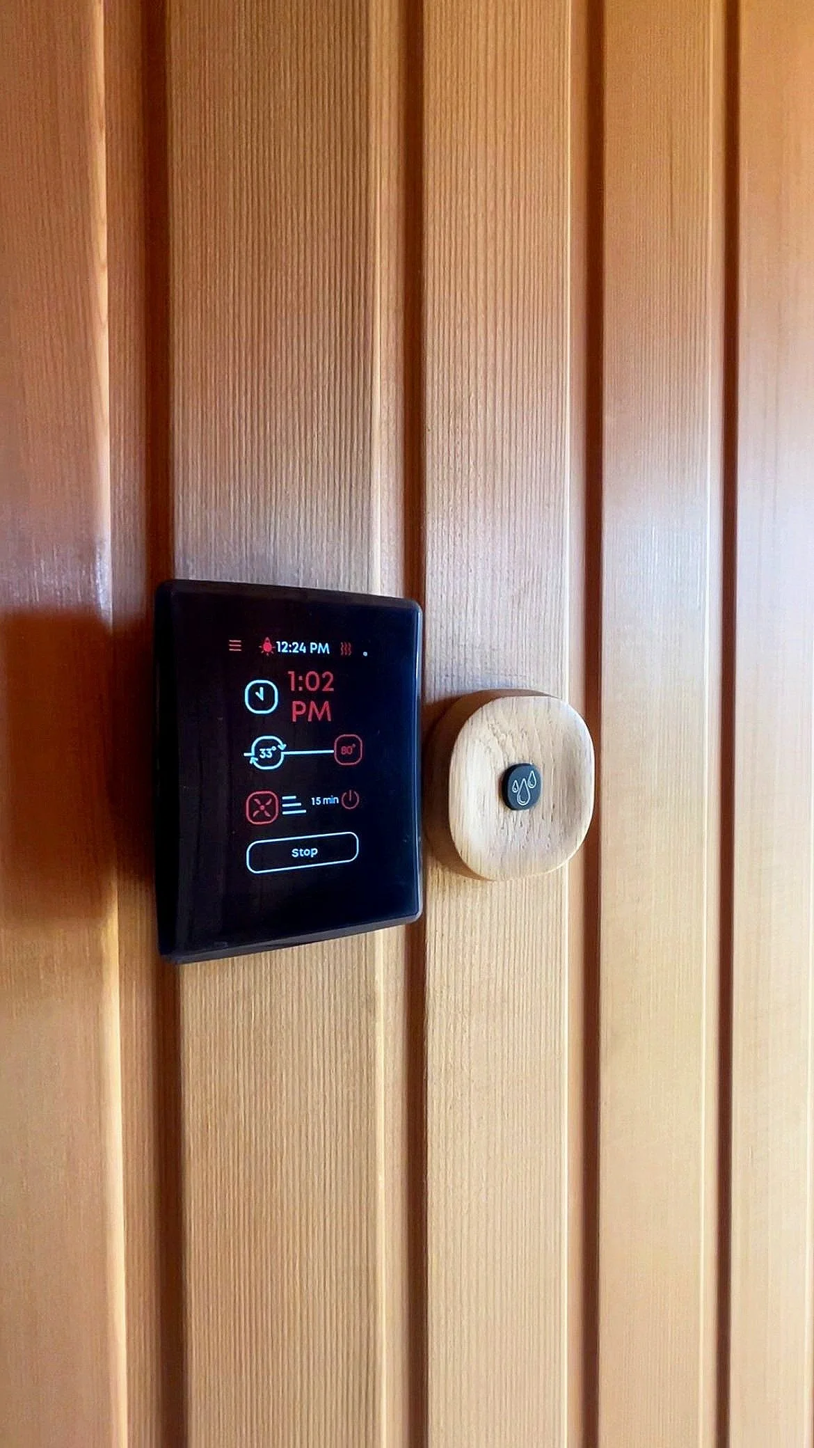 The defining element of this build is the Saunum Spa Session heater. This is not just a heat source; it is a climate-controlling device.